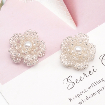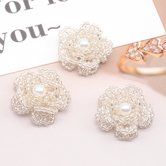 ビーズ編みパーツ お花 五弁花 編みフラワー 手作り ビーズ編みチャーム 貼り付けパーツ 約28mm(1ヶ)