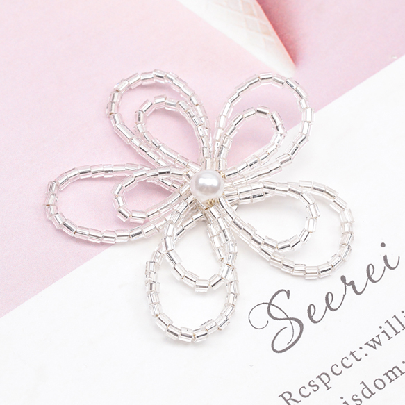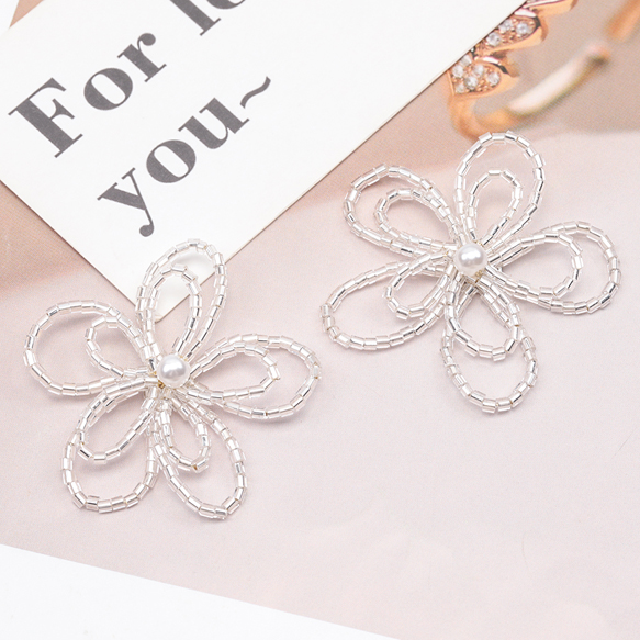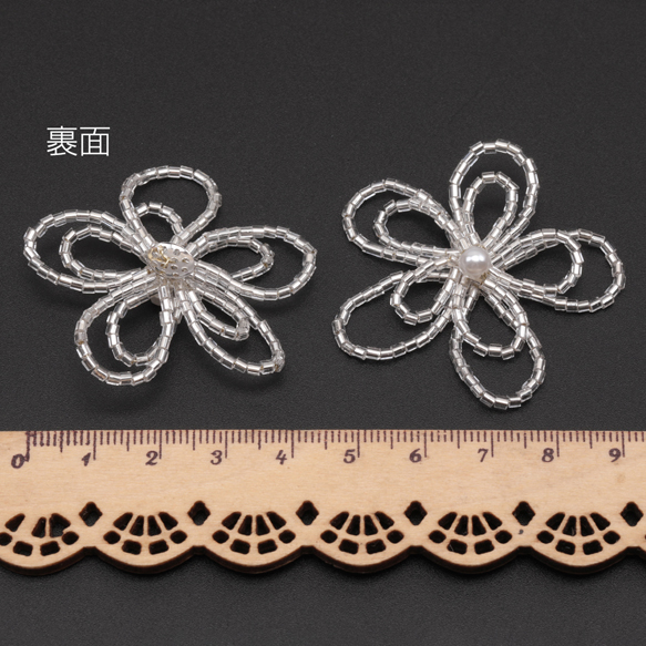 ビーズ編みパーツ お花 二連 五弁花 編みフラワー 手作り 貼り付けパーツ カボション 約45mm(1ヶ)