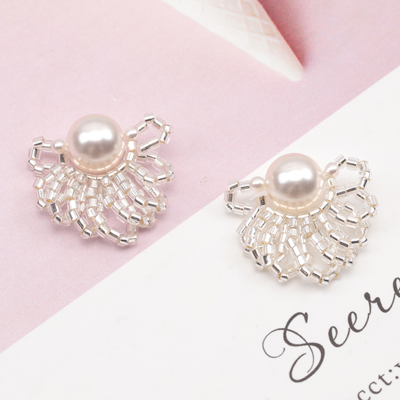 ビーズ編みパーツ お花 ABSパール 編みフラワー 手作り ビーズ編みチャーム 約20mm(1ヶ)