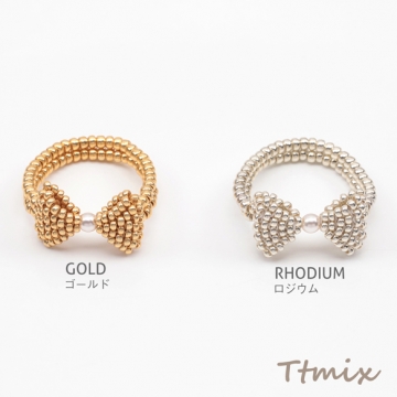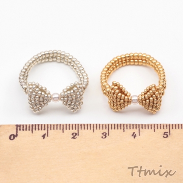 デザインリング リボン 編みビーズ ABSパール 15号内径約17.7mm(幅約11mm)(1ヶ)