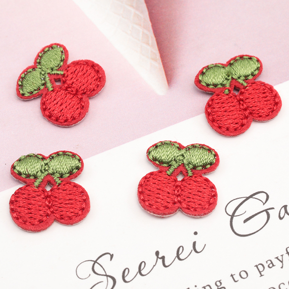 刺繍ワッペン チェリー アップリケ 刺繍パーツ テープキーホルダー装飾 衣服 帽子飾り付け 約15×16mm (20ケ)