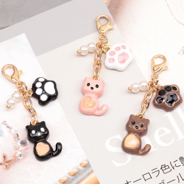 カニカン付きチャーム 猫 キャット 足跡 スマホチャーム マスクチャーム ねこストラップ キーホルダー(1ヶ)