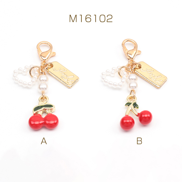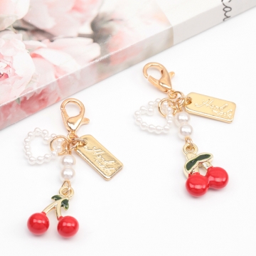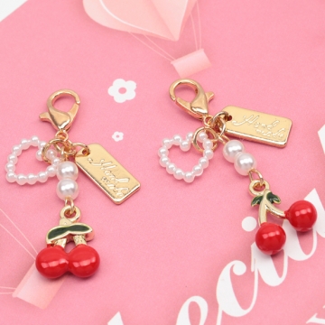 カニカン付きチャーム さくらんぼ チェリー スマホチャーム マスクチャーム ストラップ キーホルダー(1ヶ)