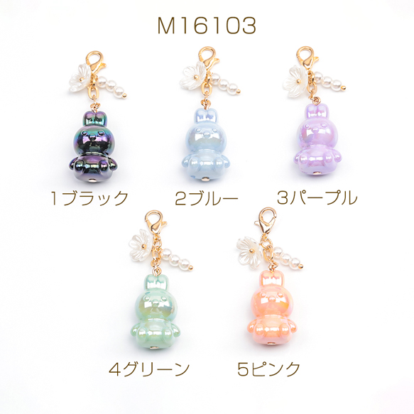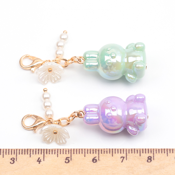 カニカン付きチャーム 可愛い立体うさぎ 兔ビーズ スマホチャーム マスクチャーム ストラップ キーホルダー(1ヶ)