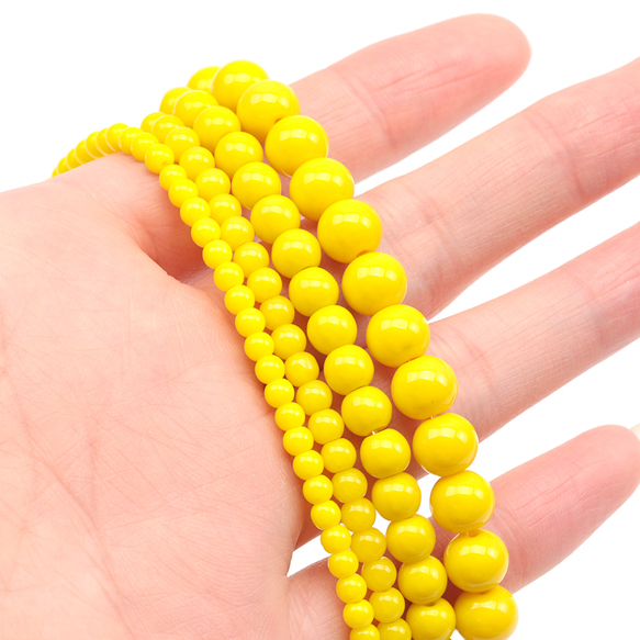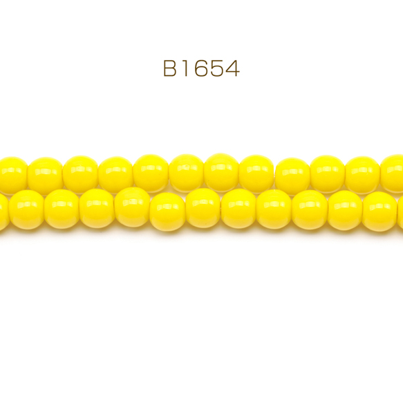 ガラスビーズ ラウンド 丸玉 丸形ビーズ イエロー 一連ビーズ 約6mm(1連(約70ヶ))