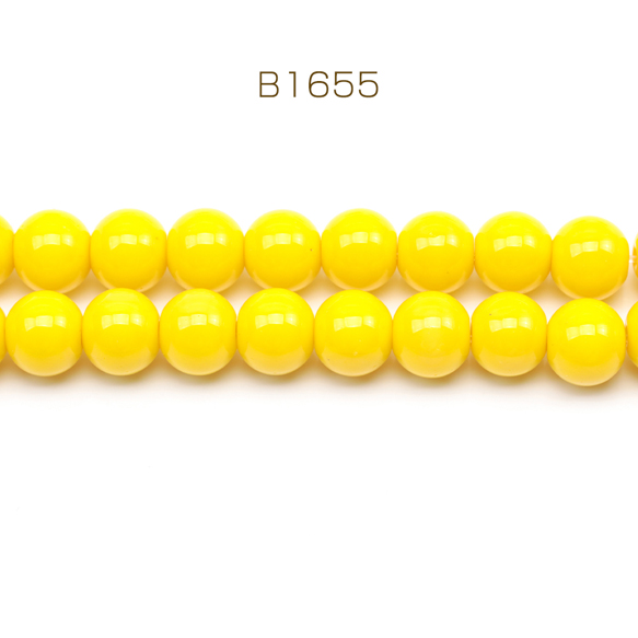 ガラスビーズ ラウンド 丸玉 丸形ビーズ イエロー 一連ビーズ 約8mm(1連(約50ヶ))
