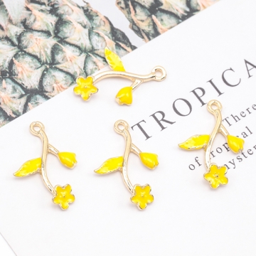 エポチャーム フラワー お花 イエロー メタルチャーム 約15×22mm(4ヶ)