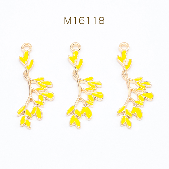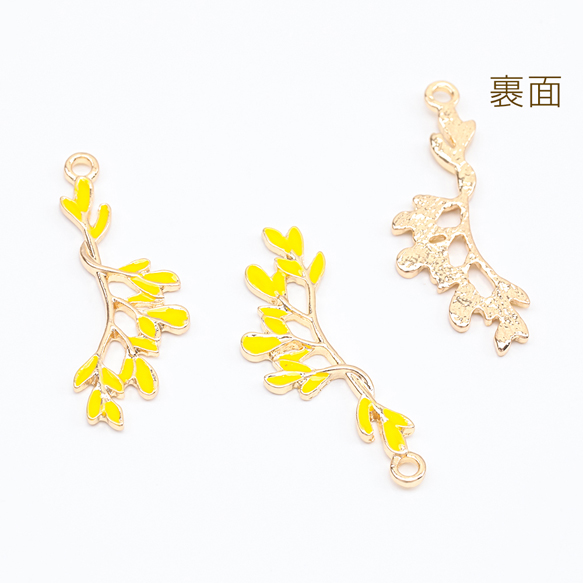 エポチャーム 葉っぱ リーフ イエロー メタルチャーム 約12×30mm(4ヶ)