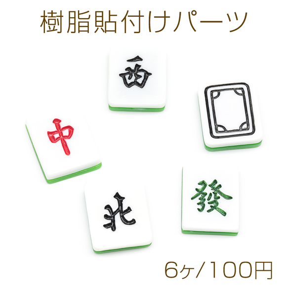 樹脂貼付けパーツ 麻雀牌 白/西/北/發/中 アクリルパーツ デコパーツ 約20×26mm(6ヶ)