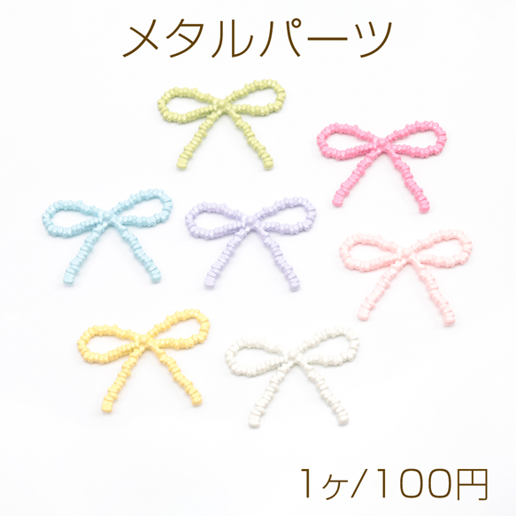 メタルパーツ カラフル リボン 蝶々結び カンなし リボンパーツ 約29×38mm(1ヶ)