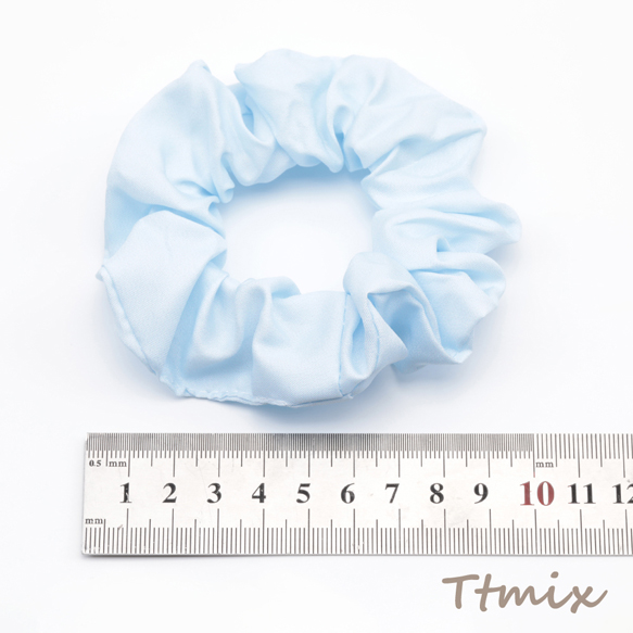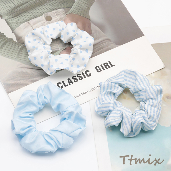 シュシュ ブルー シンプル ストライプ 水玉 無地 髪飾り 髪留め ヘアゴム ヘアアクセサリー(1ヶ)