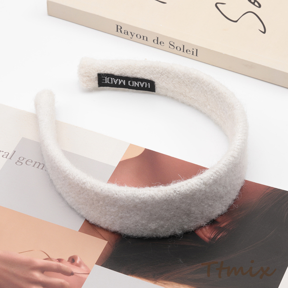 カチューシャ ホワイト もこもこ ウール 秋冬用 髪飾り ヘアアクセサリー 幅広 幅約4cm(1ヶ)