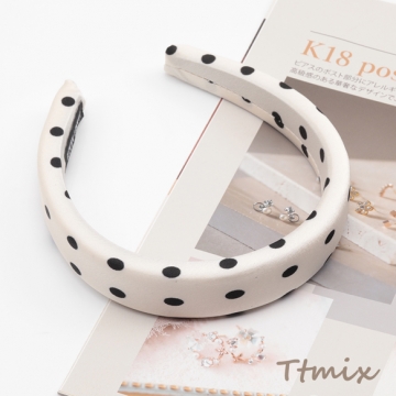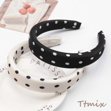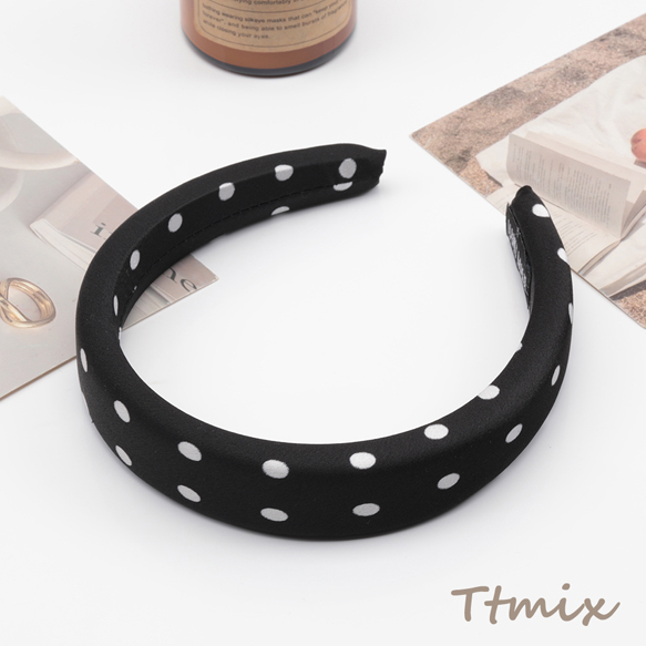 カチューシャ 白黒 水玉 ドット柄 ボリューム感 厚みのあるヘアバンド 髪飾り ヘアアクセサリー 幅約3cm(1ヶ)