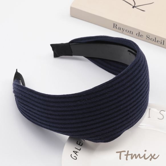カチューシャ ワイド 幅広 ストライプ ニット生地 ヘアバンド 髪飾り ヘアアクセサリー 幅約6.5cm(1ヶ)
