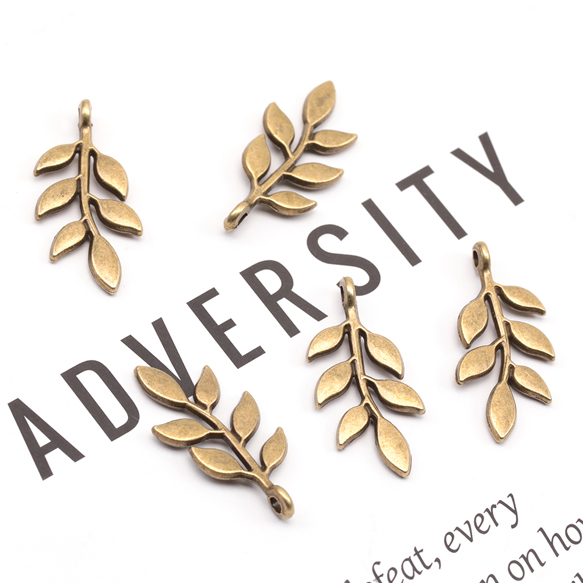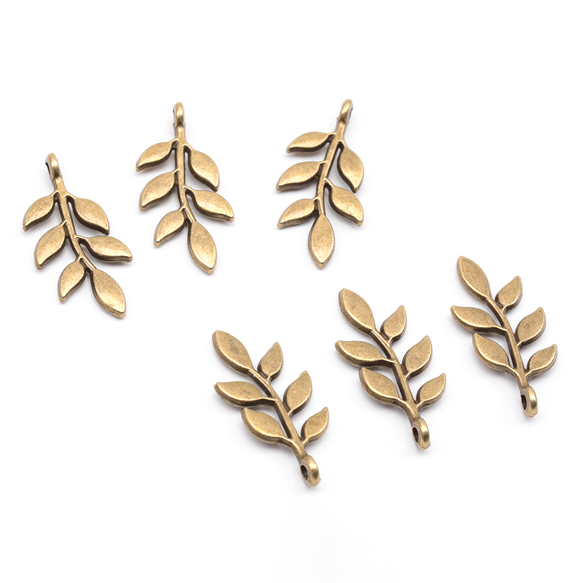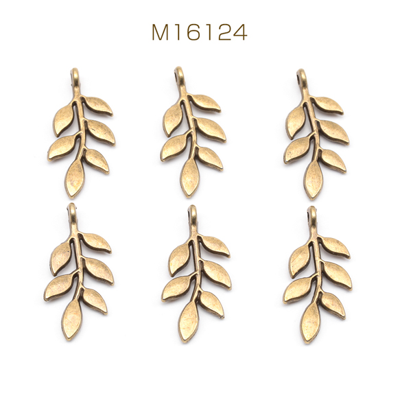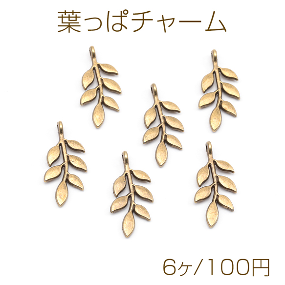 葉っぱチャーム リーフ シンプル アンティークゴールド 植物チャーム メタルチャーム 約12×24mm(6ヶ)