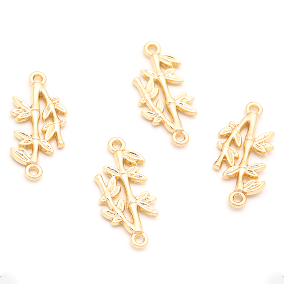 コネクターチャーム 竹 葉っぱ 接続金具 連結 コネクター 植物チャーム メタルチャーム 約12×25mm(6ヶ)