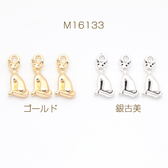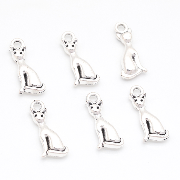 猫チャーム スリムなネコ アニマル 動物チャーム メタルチャーム 約8×18mm(6ヶ)