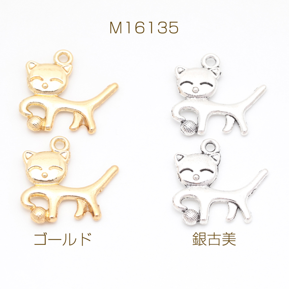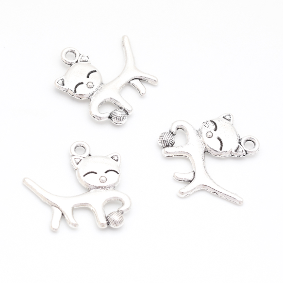 猫チャーム ネコ ボール遊び アニマル 動物チャーム メタルチャーム 約18×19mm(4ヶ)