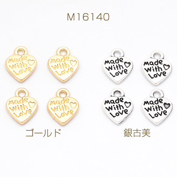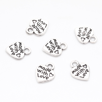 ハートチャーム LOVE 手書風 プレートチャーム メタルプレートチャーム 約10×12mm(6ヶ)