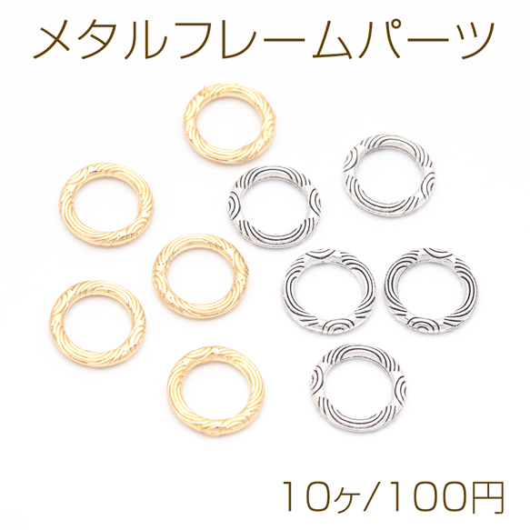 メタルフレームパーツ ラウンド 幾何学模様 ユニーク コネクターチャーム メタルパーツ メタルチャーム 約12mm(10ヶ)