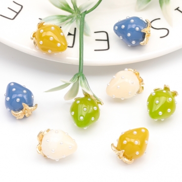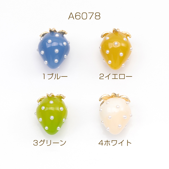 いちごチャーム NEWカラー 2026年春の新色 パール付き ストロベリー イチゴ 苺 樹脂チャーム 約12×16mm(2ヶ)