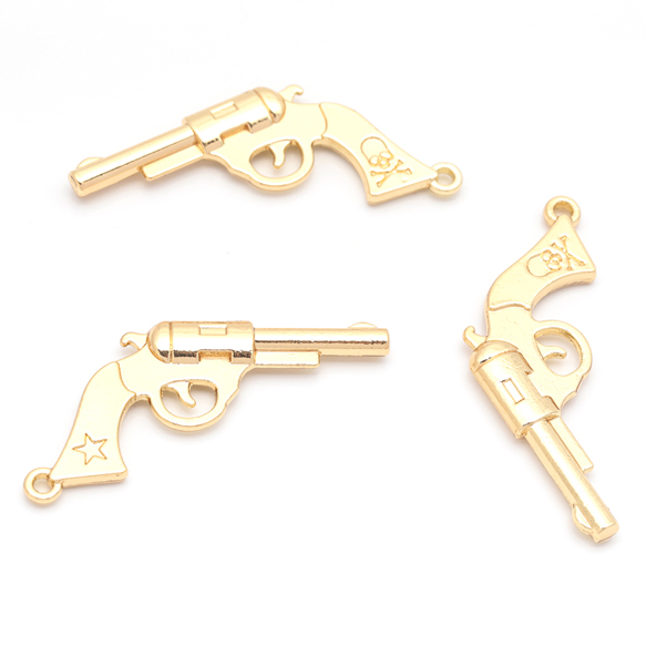 ピストルチャーム ドクロマーク 銃 鉄砲 武器 警察 ポリス スパイ メタルチャーム 約20×40mm(4ヶ)