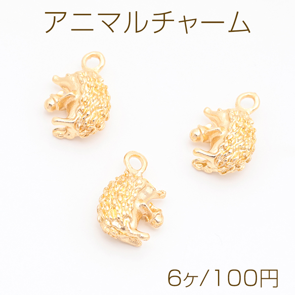 アニマルチャーム 立体ハリネズミ 動物チャーム ピアス ネックレス ハンドメイド素材 カン付き 約10×14mm (6ヶ)
