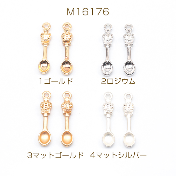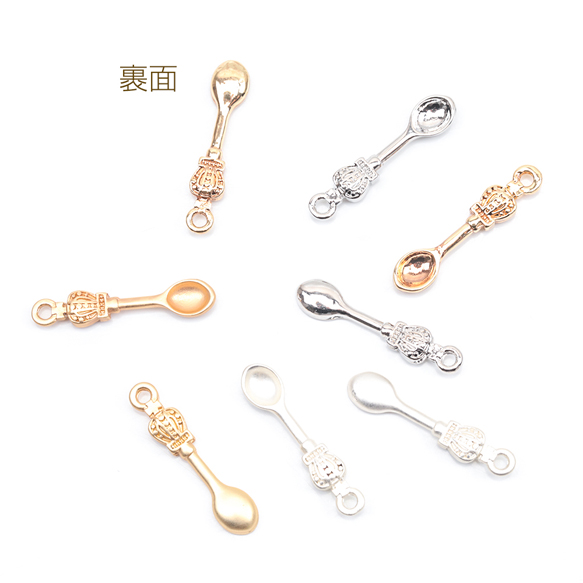 スプーンチャーム 王冠 アンティーク風 食器チャーム メタルチャーム 約5×23mm(4ヶ)