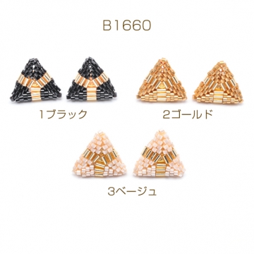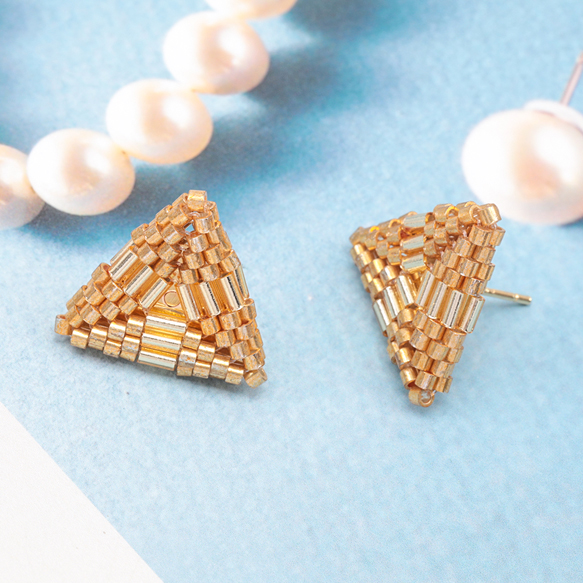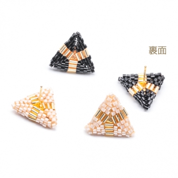 デザインピアス 三角形 トライアングル ガラスビーズ 編みチャーム スタッドピアス メタルチャーム 約17×18mm(1ペア)