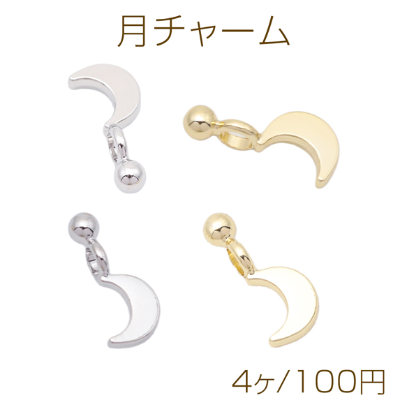 月チャーム 三日月 お月様 丸玉付き 宇宙チャーム メタルチャーム 約6×14mm(4ヶ)