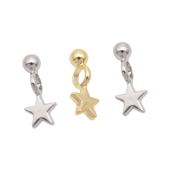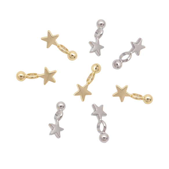 星チャーム スター 星 プレート 丸玉付き 宇宙チャーム メタルチャーム 約5×13mm(4ヶ)