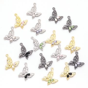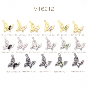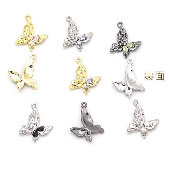 蝶チャーム ちょうちょ 片面 カラフル ストーン付き 蝶々 バタフライ メタルチャーム 約15×24mm(2ヶ)