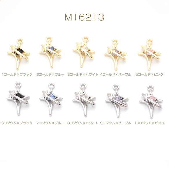 星チャーム カラフル ハートのストーン付き 流れ星 宇宙チャーム 半面 メタルチャーム 約15×22mm(2ヶ)