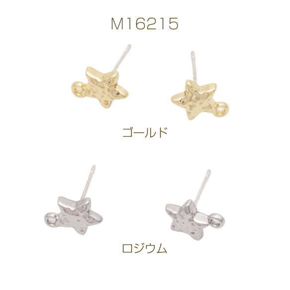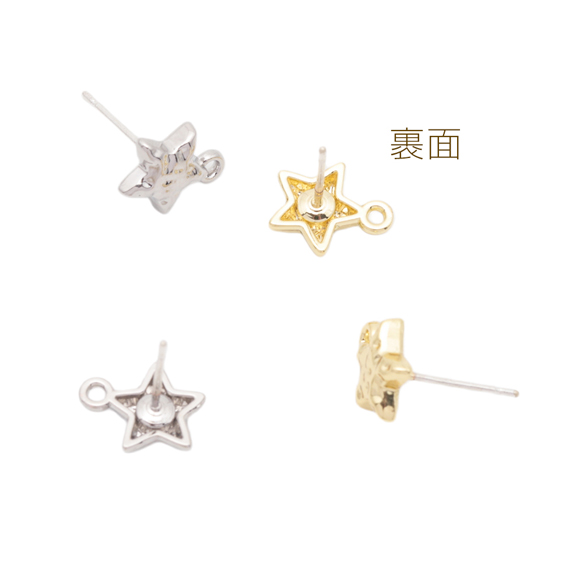 デザインピアス カン付き スター 星 表面凹凸加工 スタッドピアス メタルピアス 約10×14mm(4ヶ)