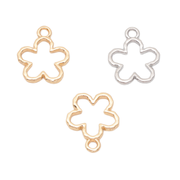 フラワーチャーム 五弁花 お花 手書風 カン付き メタルフレームチャーム 約11×14mm(4ヶ)