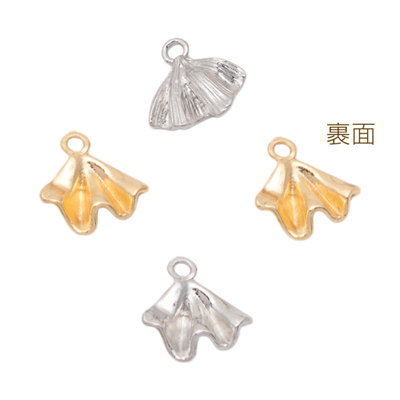 イチョウチャーム イチョウの葉 リーフ 葉っぱ 秋 紅葉 フラワーチャーム メタルチャーム 約12×13mm(4ヶ)