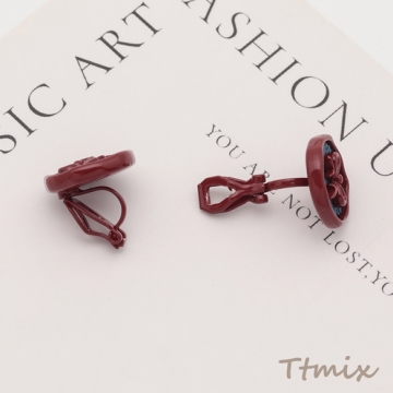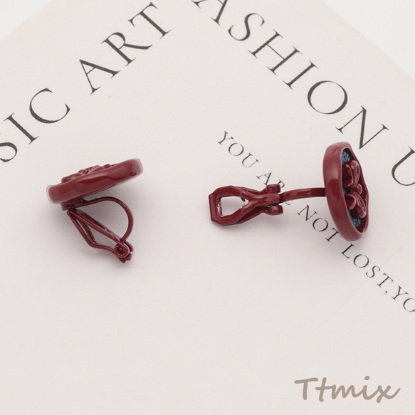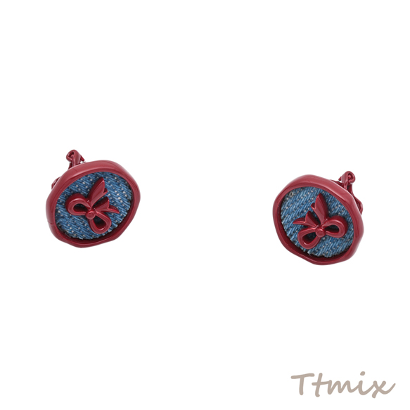 デザインピアス 不規則コイン型 リボン模様 クリップ式 蝶バネ式イヤリング 約15mm(1ペア)