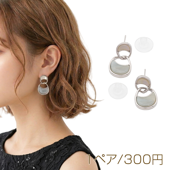 デザインピアス 揺れるチャーム ストーン付き メタルピアス スタッドピアス 約12×20mm(1ペア)
