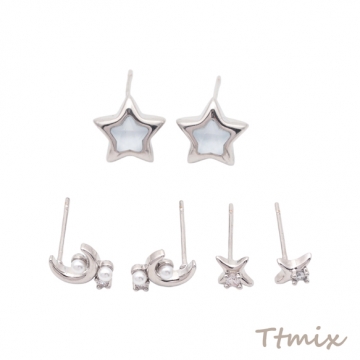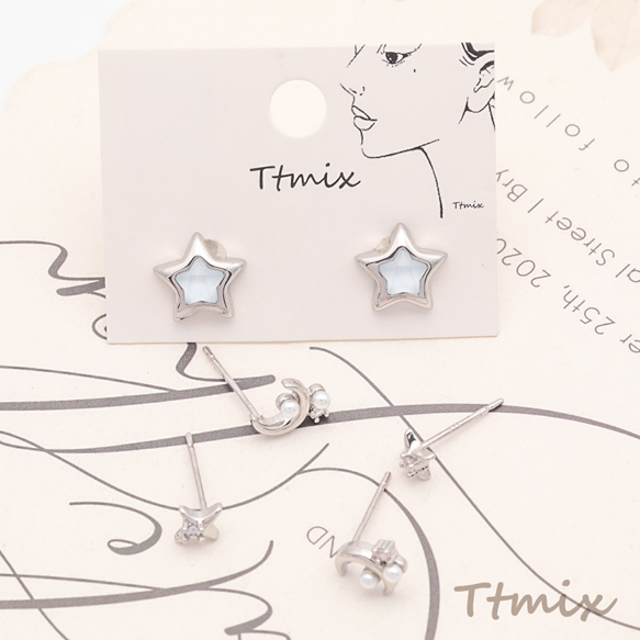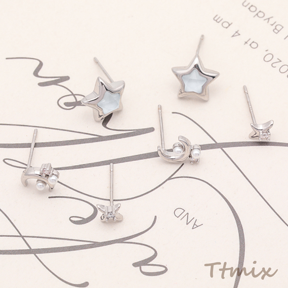 デザインピアス スター 星 三日月 宇宙 メタルピアス スタッドピアス 全3種(1セット)