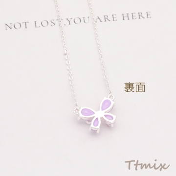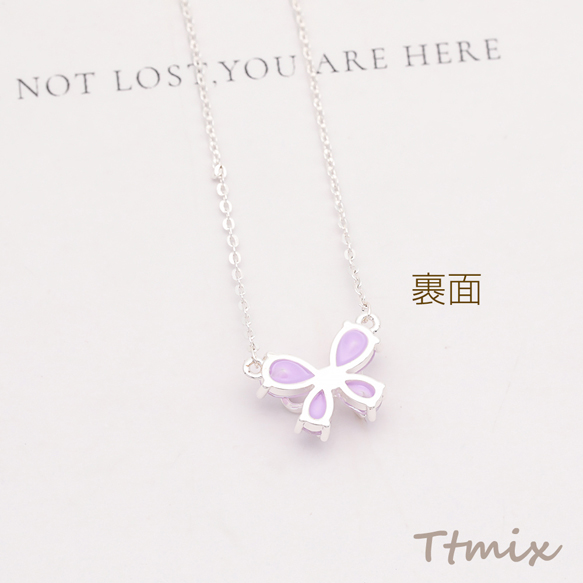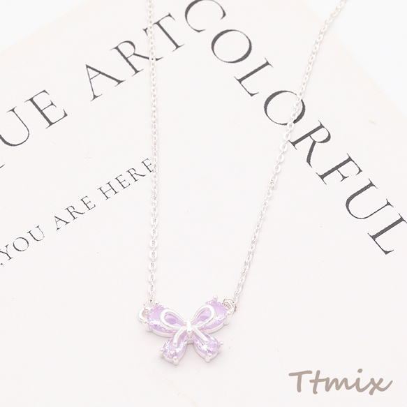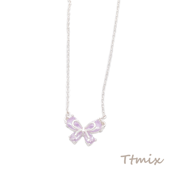 ネックレス リボン 蝶々結び パープル ストーン付き シルバーカラー 約10×14mm(1本)