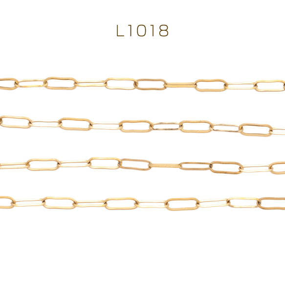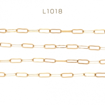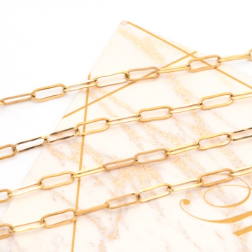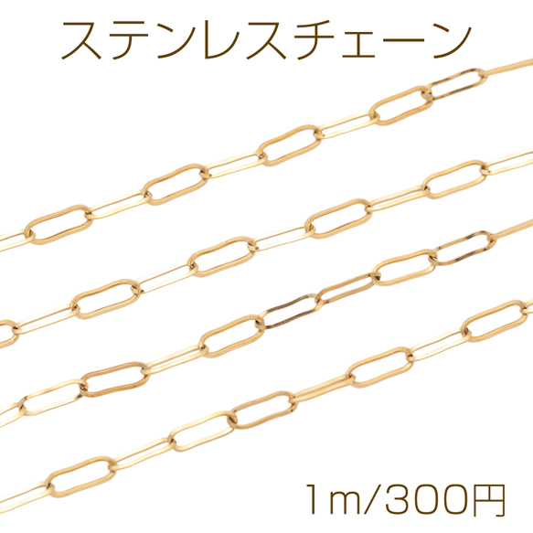 ステンレスチェーン 角あずき ロングオーバル ゴールドメッキ ハンドメードチェーン メタルチェーン 幅約3mm(約1m)