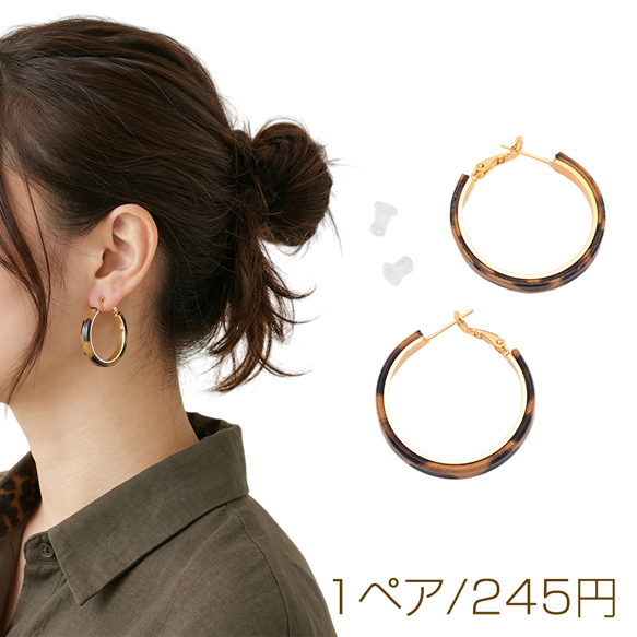 デザインピアス ヒョウ柄 レオパルド柄 フープピアス メタルピアス 厚さ約4mm 直径約33mm(1ペア)