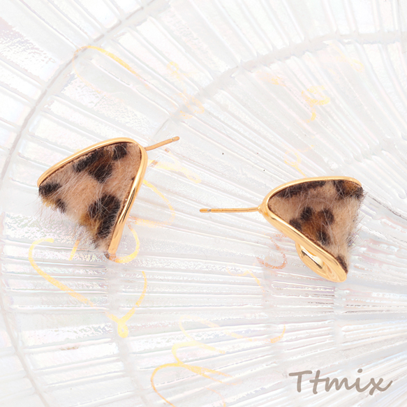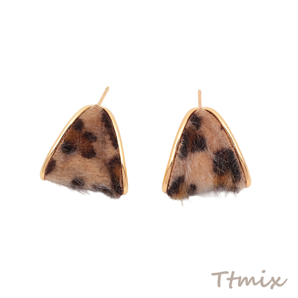 デザインピアス ヒョウ柄 レオパルド柄 三角形 スタッドピアス メタルピアス 約13×17mm(1ペア)