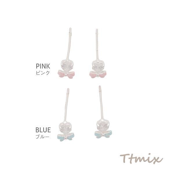 デザインピアス リボンモチーフ ストーン付き スタッドピアス メタルピアス 約4×5mm(1ペア)