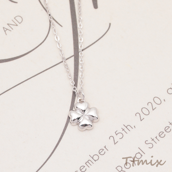 ネックレス 四つ葉のクローバー シンプル あずきチェーン シルバーカラー 長さ約42cm(1本)