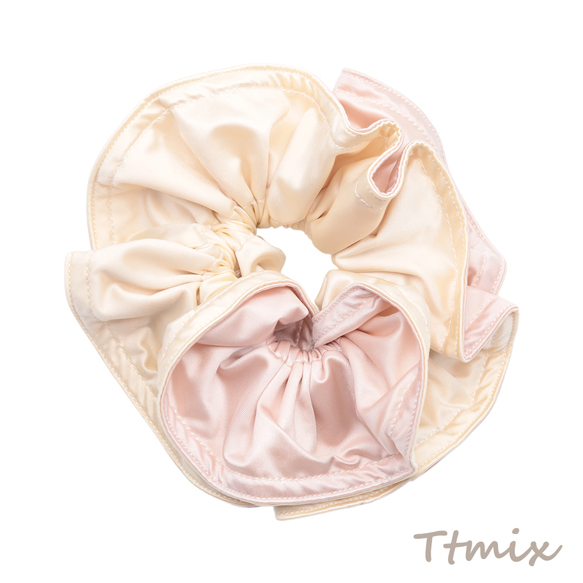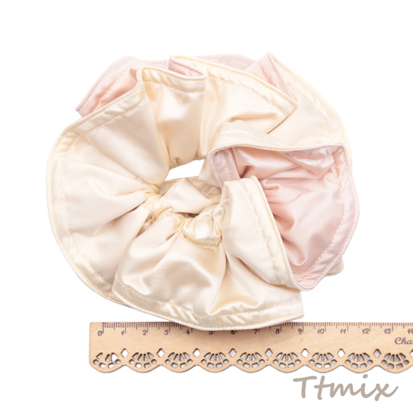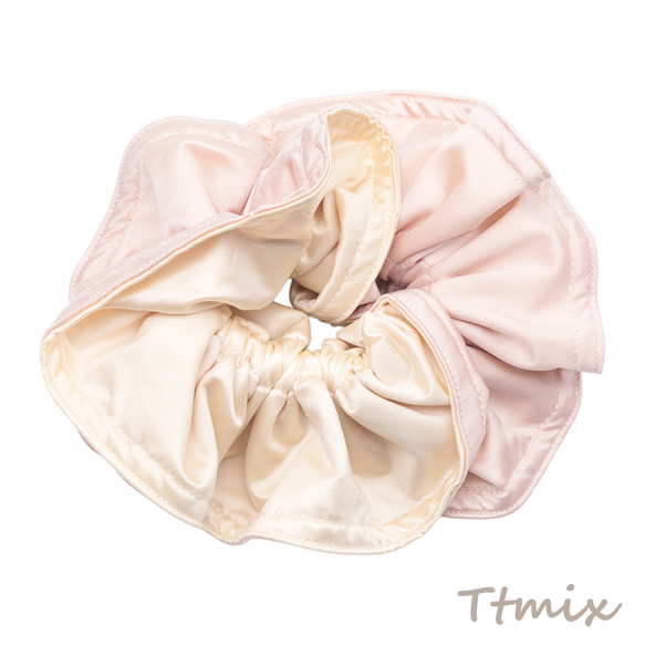 シュシュ ピンク&ベージュ リバーシブル 髪飾り 髪留め ヘアゴム ヘアアクセサリー(1ヶ)