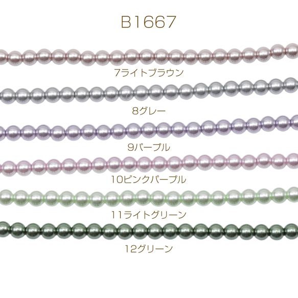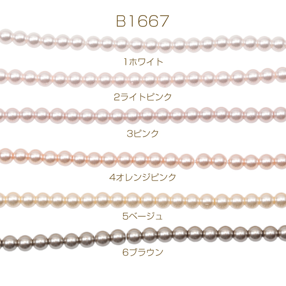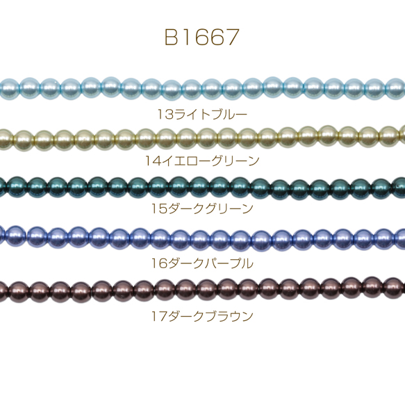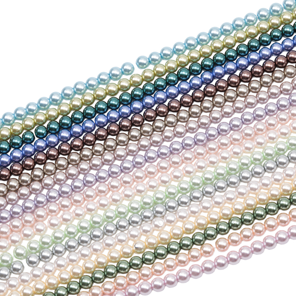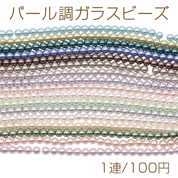パール調ガラスビーズ 丸玉 染色カラーパール 一連ビーズ ガラスパール 全17色 約6mm(1連)