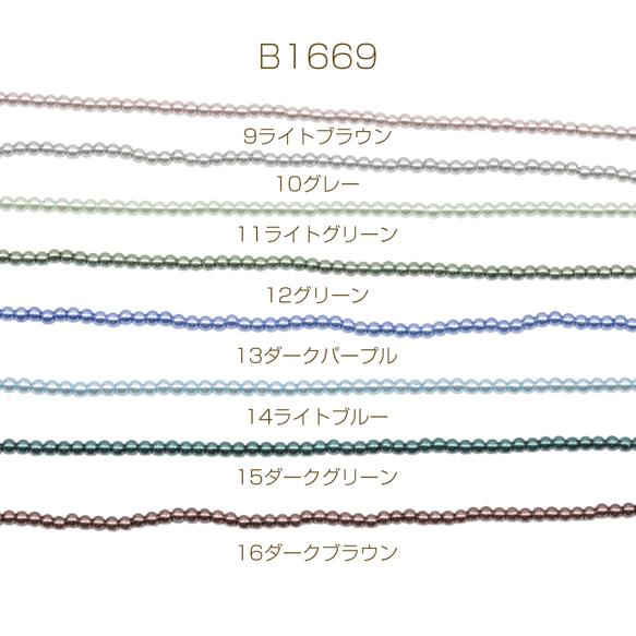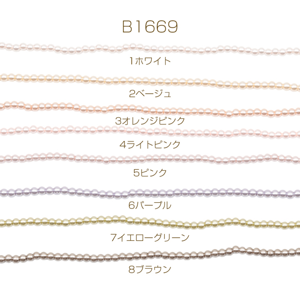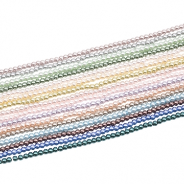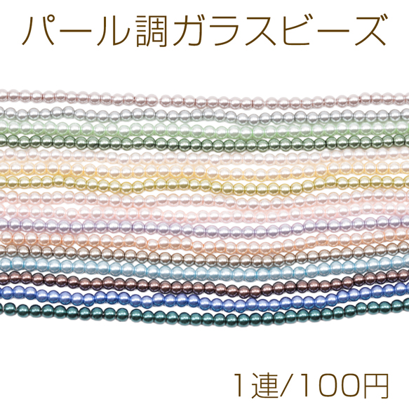 パール調ガラスビーズ 丸玉 染色カラーパール 一連ビーズ ガラスパール 全16色 約3mm(1連)