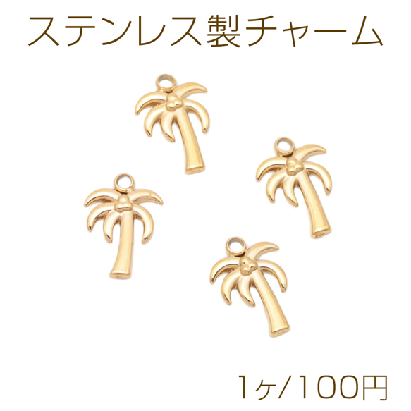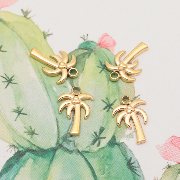 メタルチャーム ヤシの木モチーフ ハワイアン風パーツ ステンレス製 カン付き 9×13mm (1ヶ)