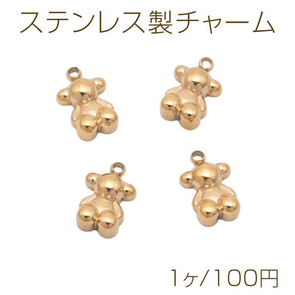 メタルチャーム くまモチーフ キュートアニマルパーツ ステンレス製 カン付き 6×10mm (1 ヶ)